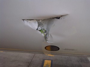 Untuk menggambarkan dalamnya kerusakan akibat tabrakan, foto yang ada dikiri menggambarkan penetrasi kerusakan sekitar 7 inci, dengan kemungkinan besar bahwa pressure hull pesawat bocor dan harus direparasi.